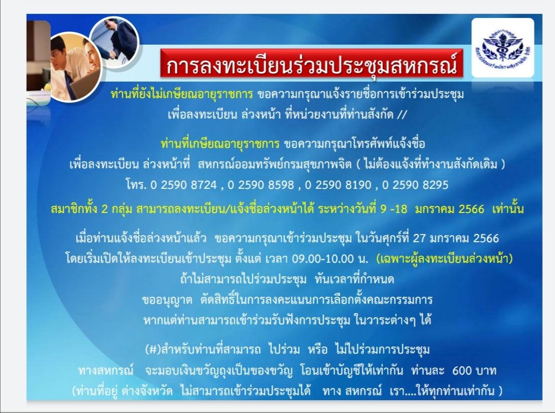 | เรื่อง | ประชาสัมพันธ์ เชิญสมาชิกเข้าร่วมประชุมใหญ่ |